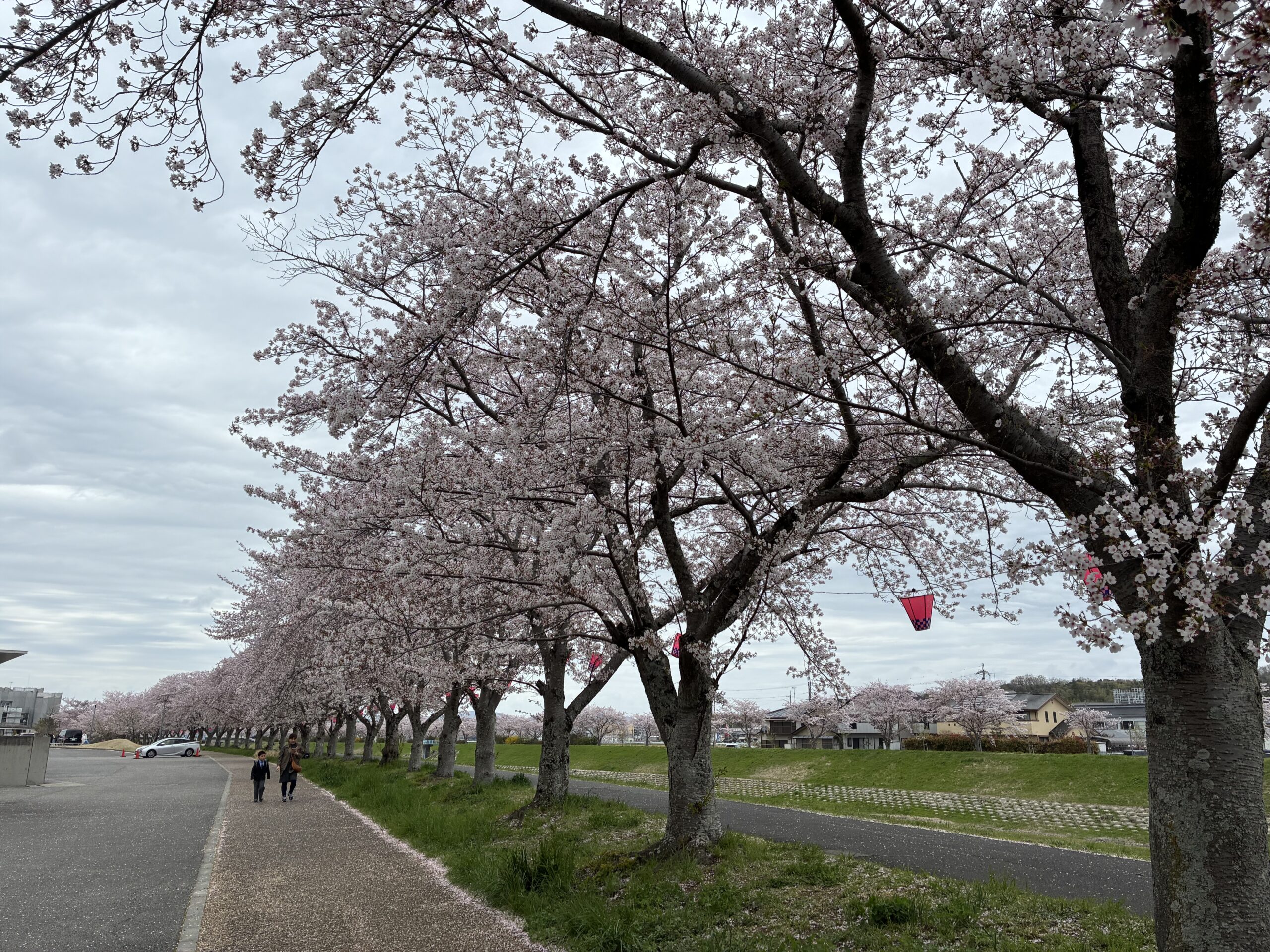 おかげで、こちらの予想に反して、桜並木は吹雪くことなくご覧のとおり。