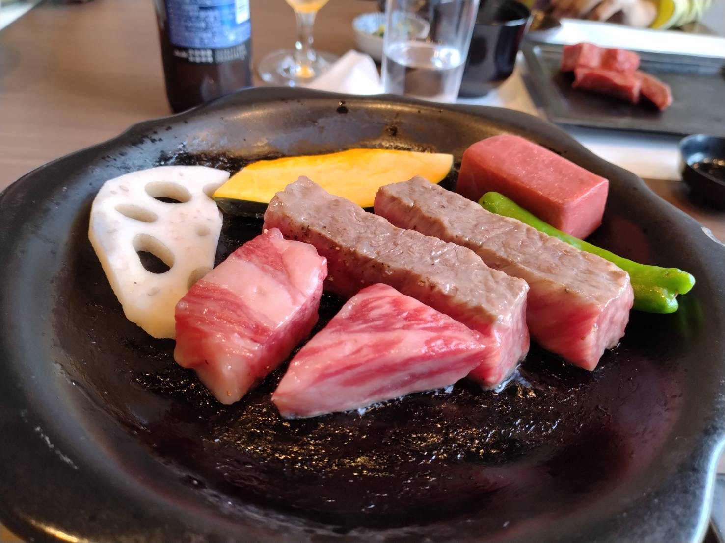 ローストビーフ、ビーフシチュー、近江牛のにぎり、ステーキと、