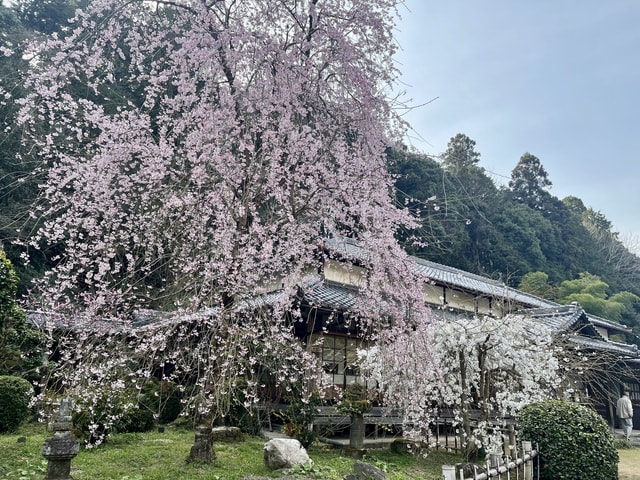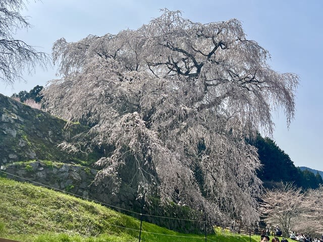 樹齢300年の巨木の一本桜、又兵衛桜。昨年はちょうど満開で、その迫力に言葉を失うほどでしたが、意外にも皆様の心をとらえたのは午後に訪ねた大野寺。又兵衛桜の近くにありながら、うそのように静かな古寺。こぢんまりした境内いっぱいに紅しだれ桜が枝を伸ばし、やさしく境内を包み込んでいました。弥勒磨崖仏も微笑んでいるようでした。