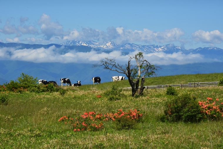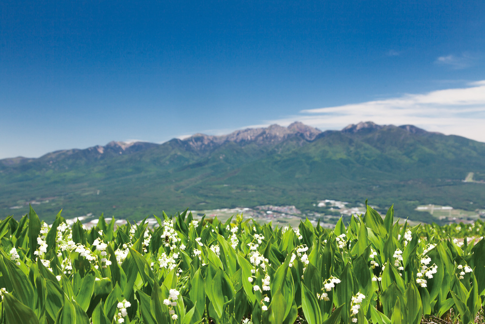 初夏の八ヶ岳高原は芽吹きの花であふれます。今年は、塩尻市の 東側にある標高1,665mの高ボッチ山へ。と言っても、登山するわけではなくバスで行けるのでご安心ください。残雪を抱く北から南アルプス、諏訪湖や富士山まで見渡すことができる360度の絶景スポット。牛の放牧があり、初夏はレンゲツツジをはじめ高山植物であふれます。もちろん、毎年好評の入笠山のスズランへも。高原ロッジの付近は純白のコナシに朱色のレンゲツツジ…命を謳歌する花であふれる季節です。